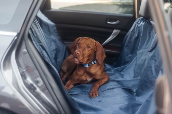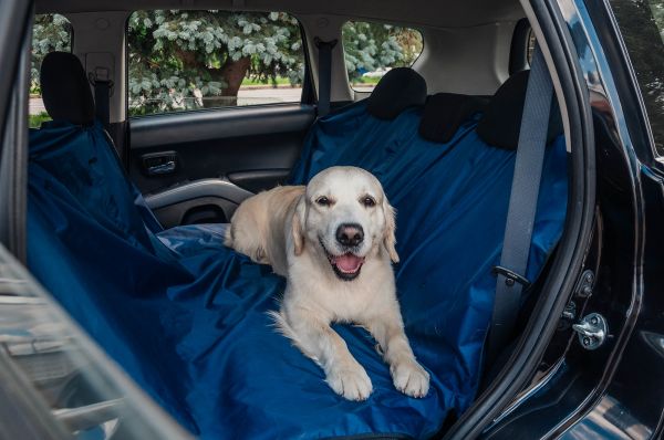 Универсальный автогамак для перевозки собаки на заднем сидении автомобиля.