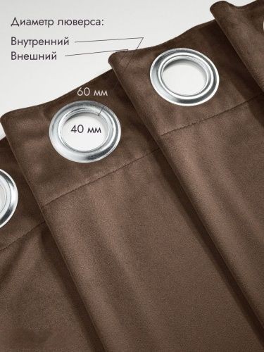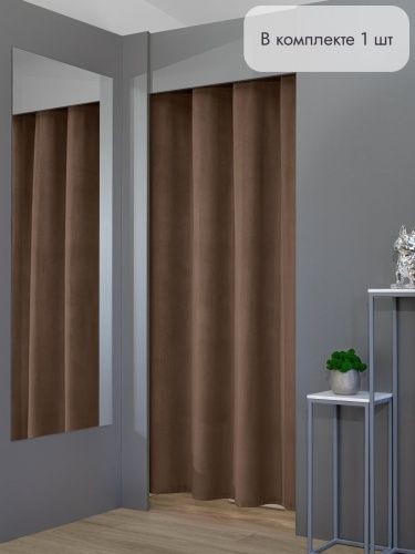 Краткое описание «Штора для примерочной и дома на люверсах бархатная цвет коричневый, 1 шт.»